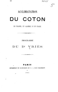 Acclimatation du coton en France, en Algâerie et en Italie