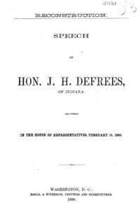 Reconstruction : speech of Hon. J.H. Defrees of Indiana, delivered in the House of Representatives, February 15, 1866.
