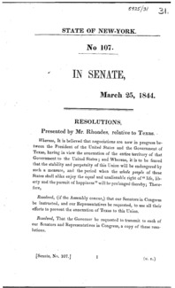 Resolutions, presented by Mr. Rhoades, relative to Texas.