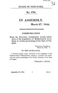 Communication from the Governor, transmitting certain resolutions of the Legislature of Massachusetts in relation to certain proceedings of the state of Virginia.