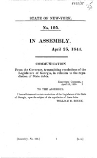 Communication from the Governor, transmitting resolutions of the Legislature of Georgia, in relation to the repudiation of state debts.