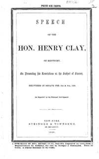 Speech of the Hon. Henry Clay, of Kentucky, on presenting his resolutions on the subject of slavery : delivered in Senate, Feb. 5th & 6th, 1850