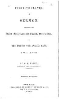 Fugitive slaves : a sermon, preached in the North Congregational Church, Winchendon, on the day of the annual fast, April 11, 1850