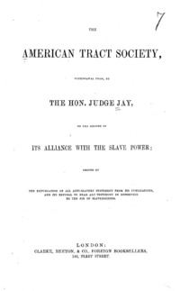 The American Tract Society, withdrawal from, by the Hon. Judge Jay : on the ground of its alliance with the slave power : proved by the expurgation of all anti-slavery sentiment from its publications, and its refusal to bear any testimony in opposition to the sin of slaveholding.