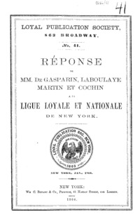 Râeponse de mm. de Gasparin, Laboulaye, Martin et Cochin, áa la Ligue loyale et nationale de New York.
