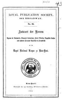 Antwort der herren Agenor de Gasparin, Edouard Laboulaye, Henri Martin, Augustin Cochin und anderer freunde Amerikas in Frankreich an die Loyal national league zu New-York.