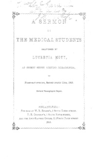 A sermon to the medical students : delivered by Lucretia Mott, at Cherry Street Meeting House, Philadelphia, on First-day evening, second month 11th, 1849 : revised phonographic report.