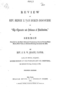 Review of Rev. Henry J. Van Dyke's discourse on "The character and influence of abolitionism" : a sermon preached in the Third Reformed Presbyterian Church, Twenty-Third Street, New York, on Sabbath evening, December 23, 1860