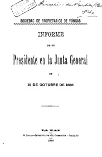 "Breve informe que como presidente de la Sociedad de Propietarios de Yúngas y autorizado por el Consejo de Administración, dirige a los capitalistas extrangeros"