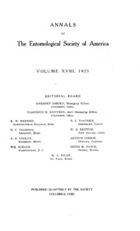 - Volume 18, Number 1: Annals of the Entomological Society of America