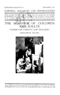 - Number 218, Edition Cornell Bulletin for Homemakers - The Behavior of Children and Adults. Course for Parents and Teachers: Cornell extension bulletin