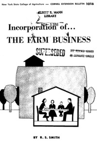 - Number 1016 - Incorporation of...the Farm Business: Cornell extension bulletin