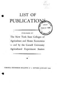- Number 47, Edition Revised - List of Publications Published by the New York State Colleges of Agriculture and Home Economics and by the Cornell University Agricultural Experiment Station: Cornell extension bulletin
