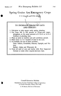 - Number 637, Series War Emergency Bulletin 115 - Spring Grains Are Emergency Crops: Cornell extension bulletin