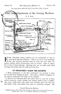 - Number 566, Series War Emergency Bulltin 70 - Care and Adjustment of the Sewing Machine: Cornell extension bulletin