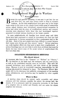 - Number 575, Series War Emergency Bulletin 79 - Neighborhood Meetings in Wartime: Cornell extension bulletin