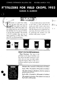 Number 780, Edition Revised - Fertilizers for Field Crops, 1952: Cornell extension bulletin