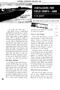 - Number 780, Edition Revised - Fertilizers for Field Crops--1960: Cornell extension bulletin