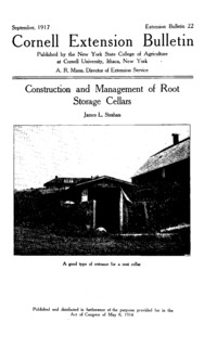 - Number 22 - Construction and Management of Root Storage Cellars: Cornell extension bulletin