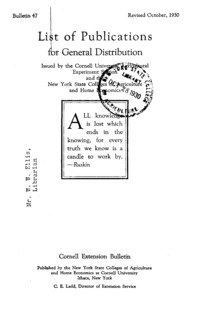 - Number 47, Edition Revised - List of Publications for General Distribution: Cornell extension bulletin