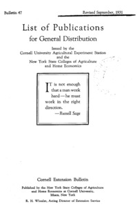 - Number 47, Edition Revised - List of Publications for General Distribution: Cornell extension bulletin