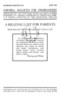 - Number 303, Edition Cornell Bulletin for Homemakers - A Reading List for Parents: Cornell extension bulletin