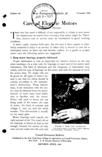 - Number 541, Edition Revised - Care of Electric Motors: Cornell extension bulletin