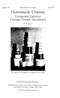Number 322, Edition Reprint - Homemade Cheeses. Unripened Varieties--Cottage, Cream, Neufchatel: Cornell extension bulletin
