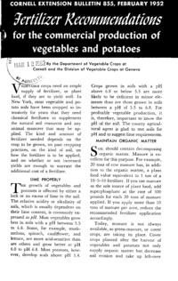 Number 855 - Fertilizer Recommendations for the Commercial Production of Vegetables and Potatoes: Cornell extension bulletin