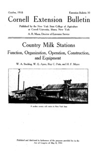 - Number 30 - Country Milk Stations. Function, Organization, Operation, Construction, and Equipment: Cornell extension bulletin