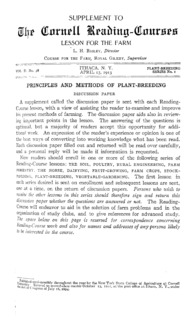 - Volume 2, Number 38, Supplement - Principles and Methods of Plant-Breeding. Discussion Paper: Cornell reading course for the farm