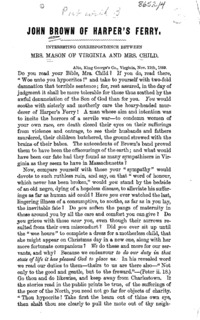 - John Brown of Harper's Ferry : interesting correspondence between Mrs. Mason of Virginia and Mrs. Child.