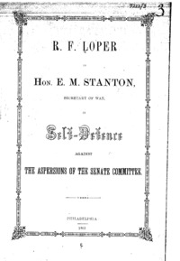 R.F. Loper to Hon. E.M. Stanton, Secretary of War : in self-defence against the aspersions of the Senate Committee.