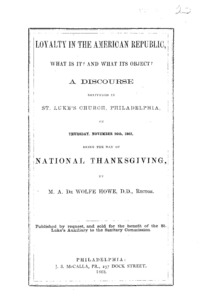 - Loyalty in the American Republic, what is it? and what its object? A discourse delivered in St. Luke's Church, Philadelphia, November 26th, 1863, being the day of national thanksgiving.