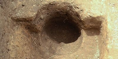 In total, archaeologists uncovered approximately 410 square feet (38 square meters) of the entryway or vestibule at the west end of an Onöndowa'ga:' longhouse. The structure was about 20 feet (6 meters) wide, and was oriented in an east-west direction. Although we tried to trace out the remainder of the structure, Euroamerican road construction, utility lines, and the like had badly damaged any traces of the eastern portion of the longhouse and we were not able to determine its total length. While research is ongoing regarding the posts, pit features, and material culture we recovered from this area, we did not find any obvious large interior structural posts so the excavated part may entirely be the entryway or vestibule. An entryway this large must have been attached to a substantial, multiple-hearth longhouse.